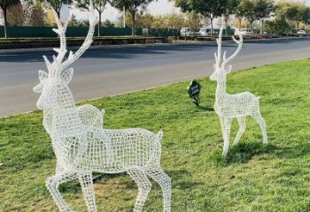 不銹鋼鏤空網(wǎng)格鹿燈光亮化擺件,為公園草坪上裝飾增添精彩