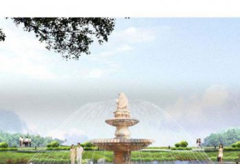 紅色晚霞,浪漫水景——精美石雕噴泉鯉魚