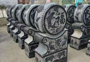 古典精美大理石浮雕鯉魚吉祥圓形抱鼓石
