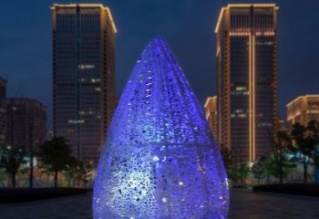 夜晚發(fā)光不銹鋼鏤空水滴雕塑