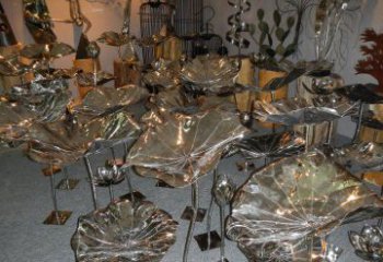 夏日荷花景觀,精美的銅雕燦爛著溫暖