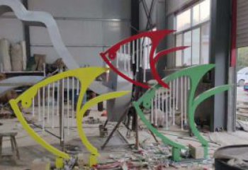 藍(lán)色不銹鋼魚(yú)雕塑,簡(jiǎn)約裝飾街道