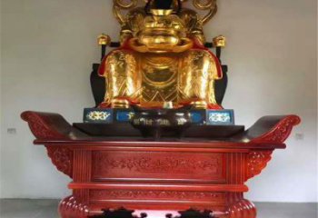 定做元寶大殿彩繪鎏金木雕供桌