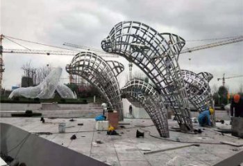 不銹鋼海豚雕塑跳躍在商業(yè)街的美麗守護